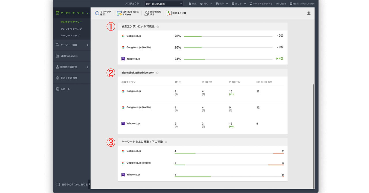 毎日でも週一でも好きな時間に設定しておけば、順位変動をいち早くチェックできるので、わざわざ手動で検索する手間が省けます。