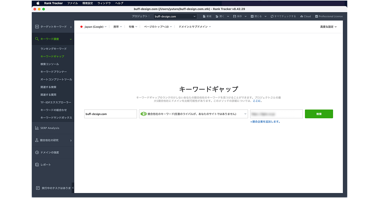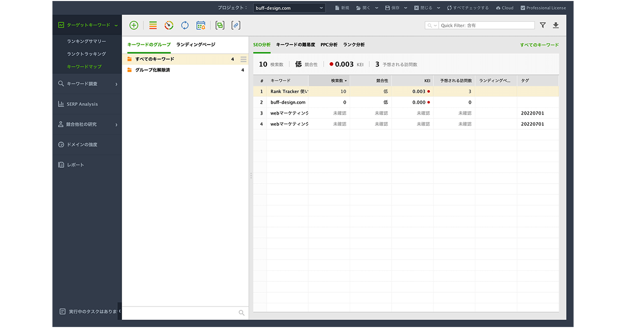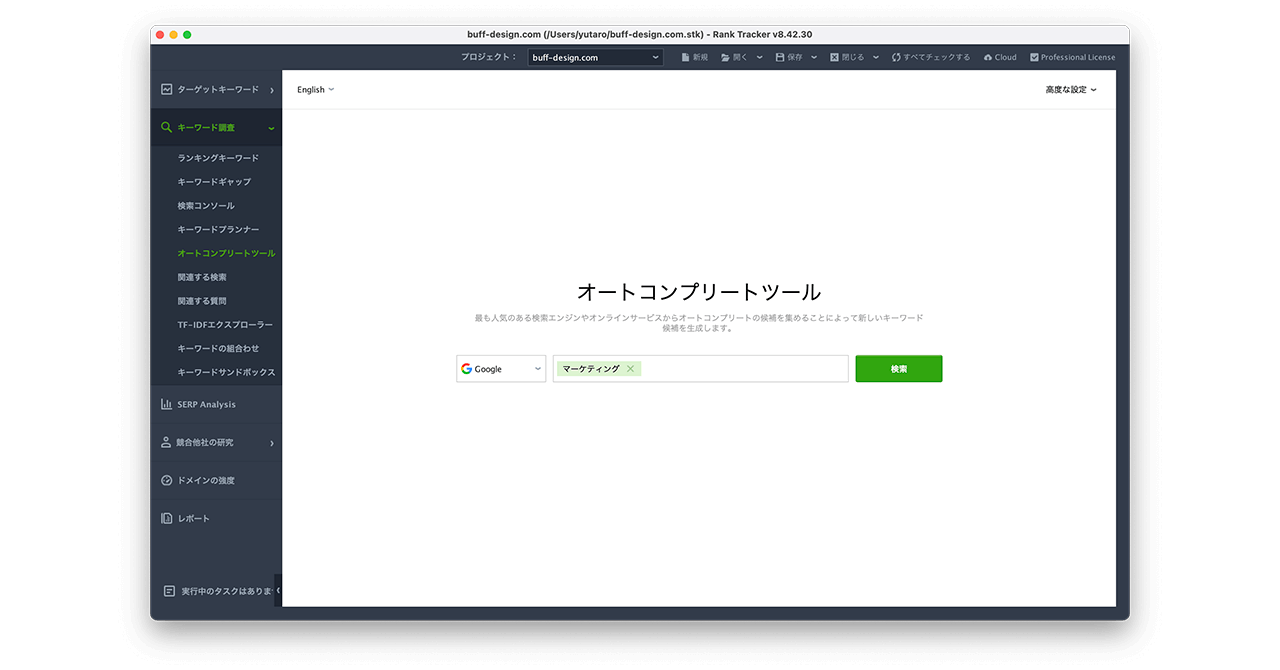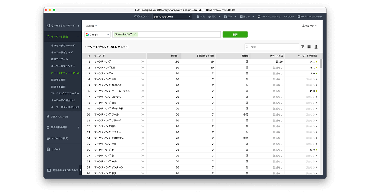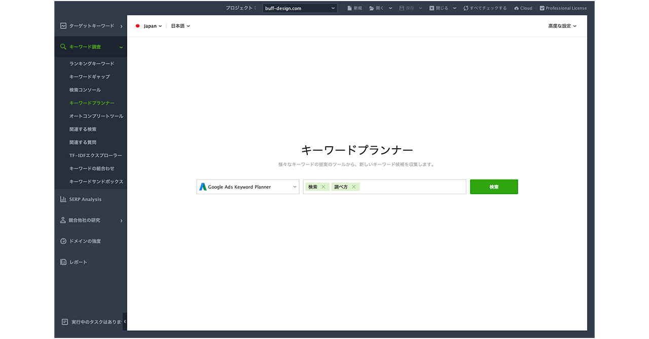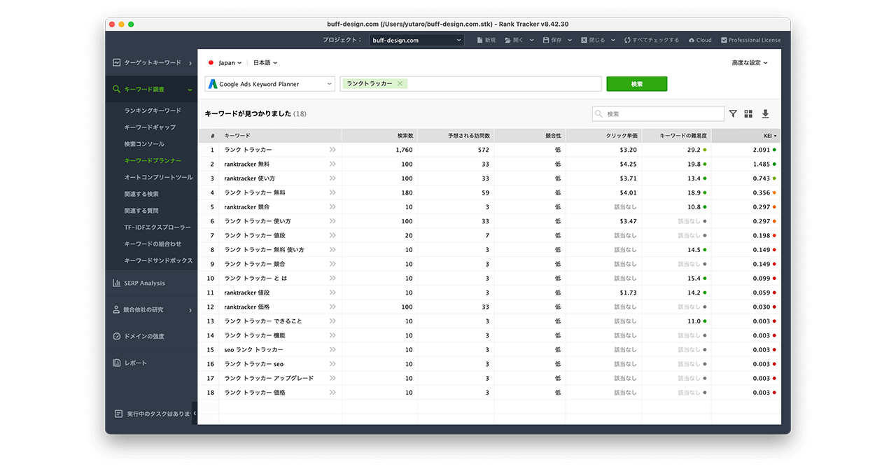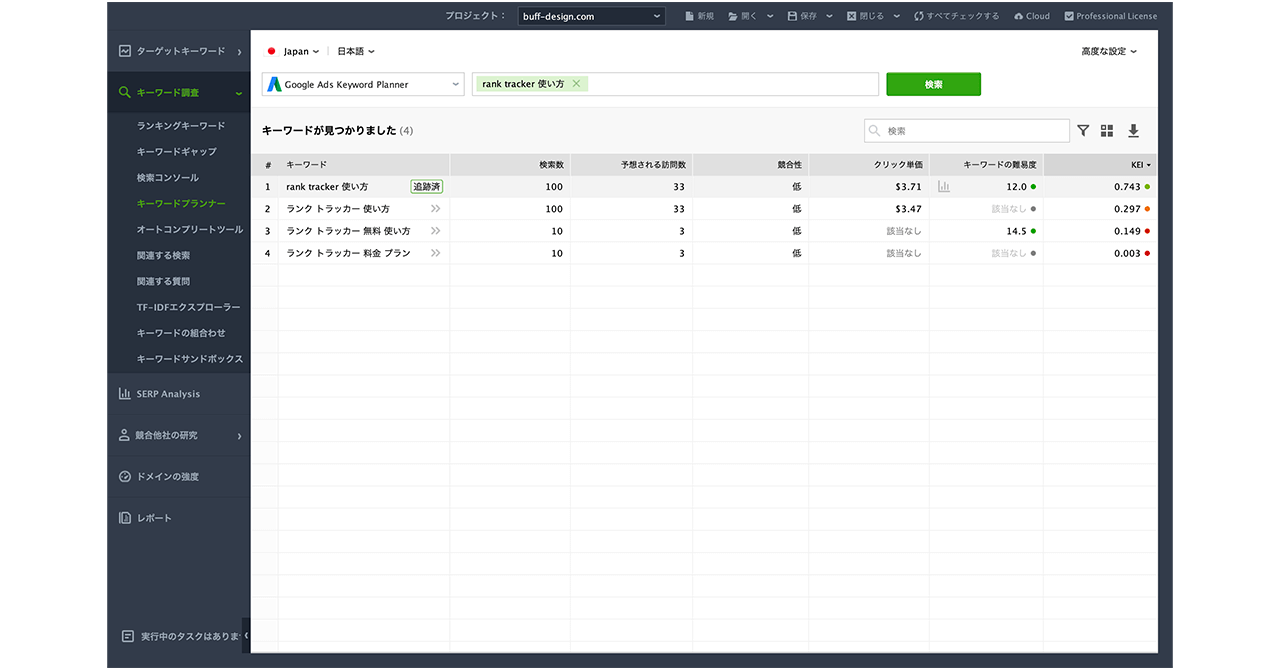 今まで使っていたGoogle公式ツールのキーワード調査を、Rank Trackerのソフト内で一括で使えて完結することができます。