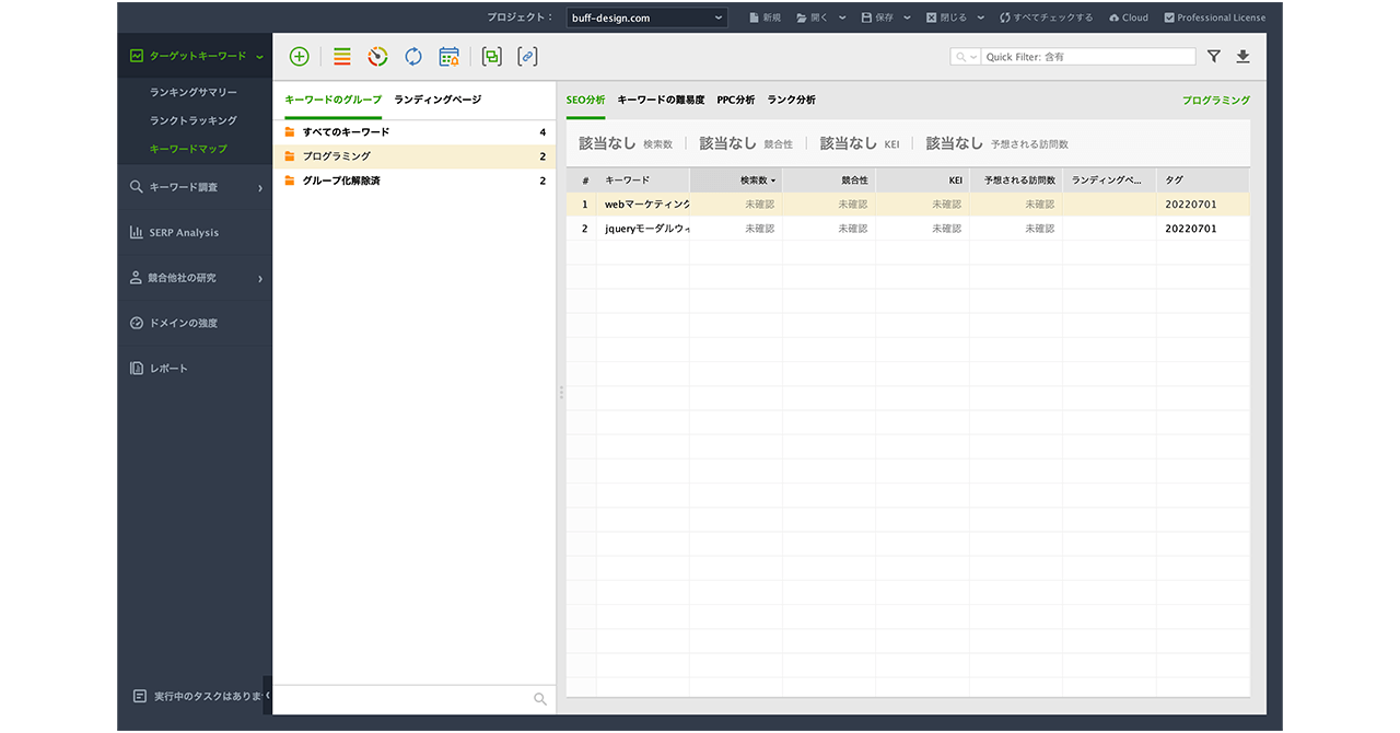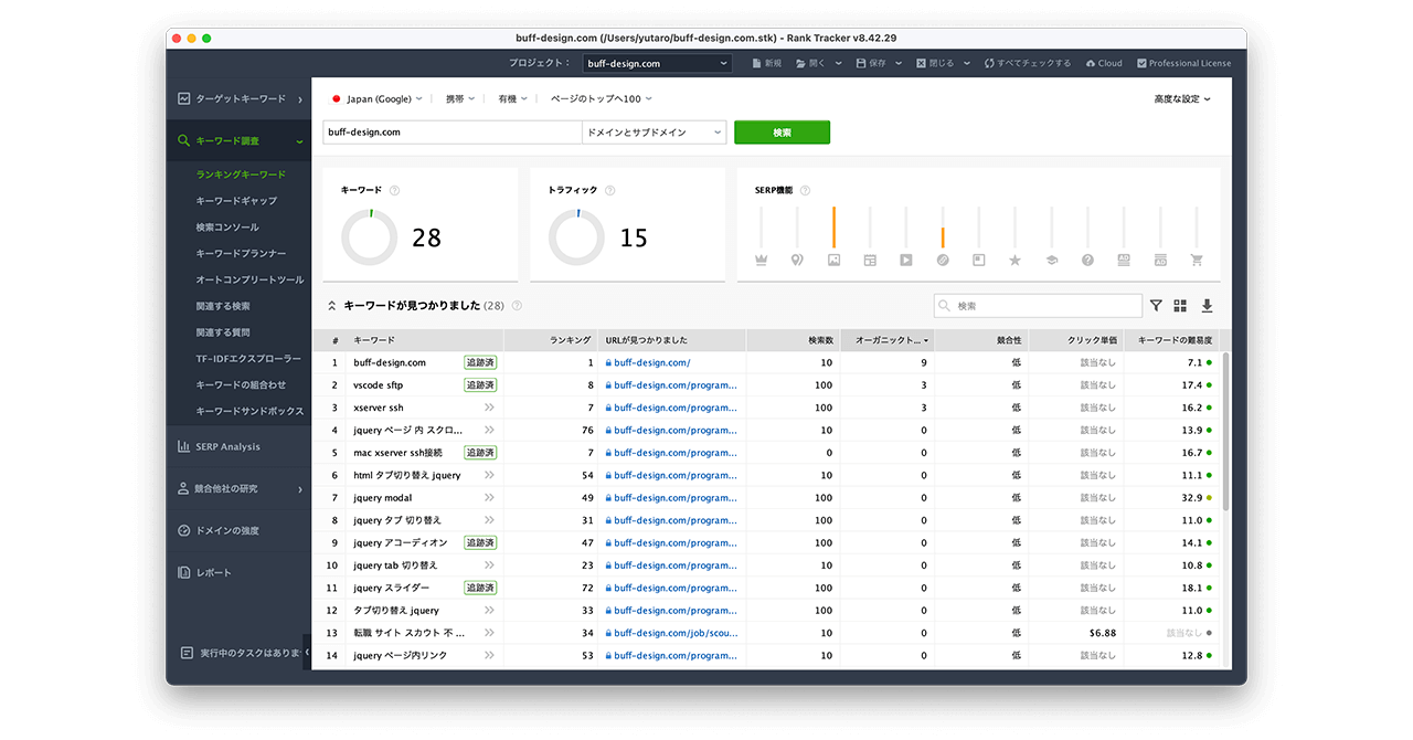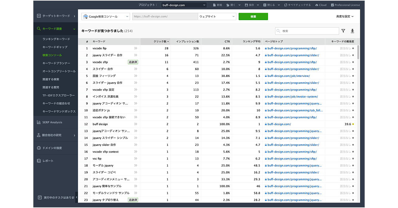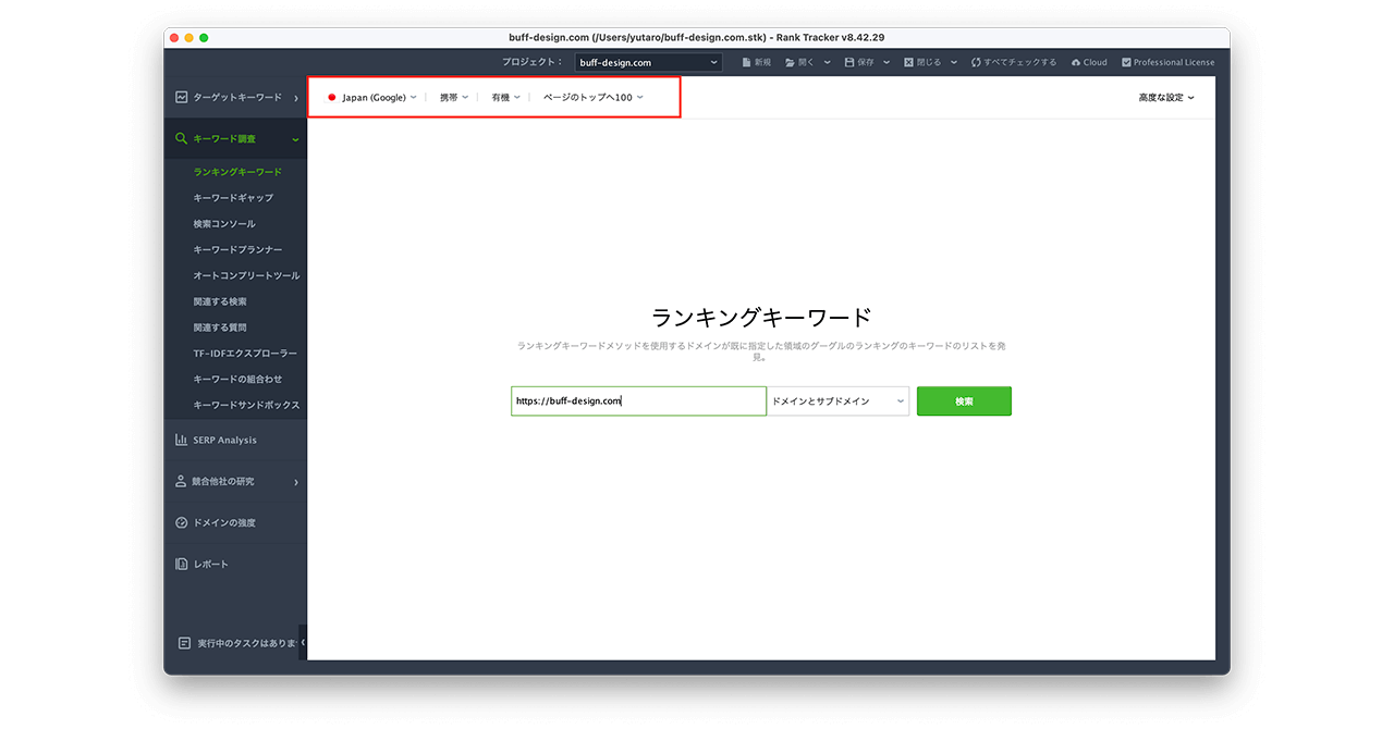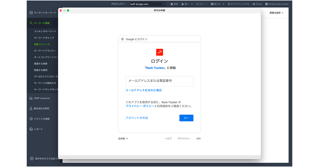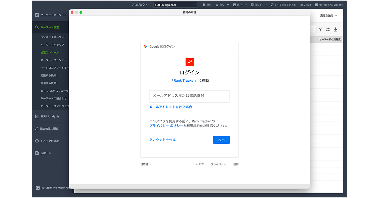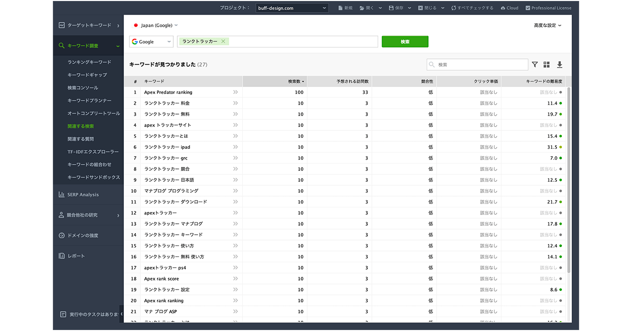 今まで使っていたGoogle公式ツールのキーワード調査を、Rank Trackerのソフト内で一括で使えて完結することができます。