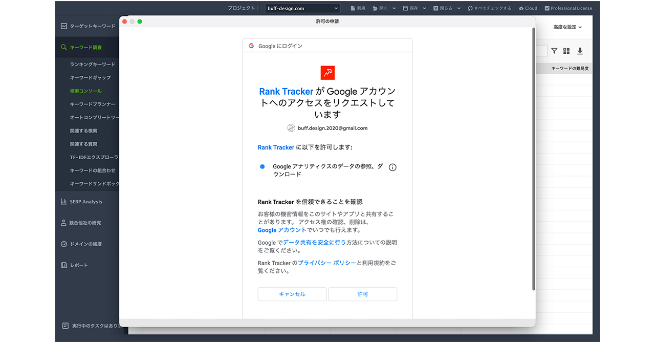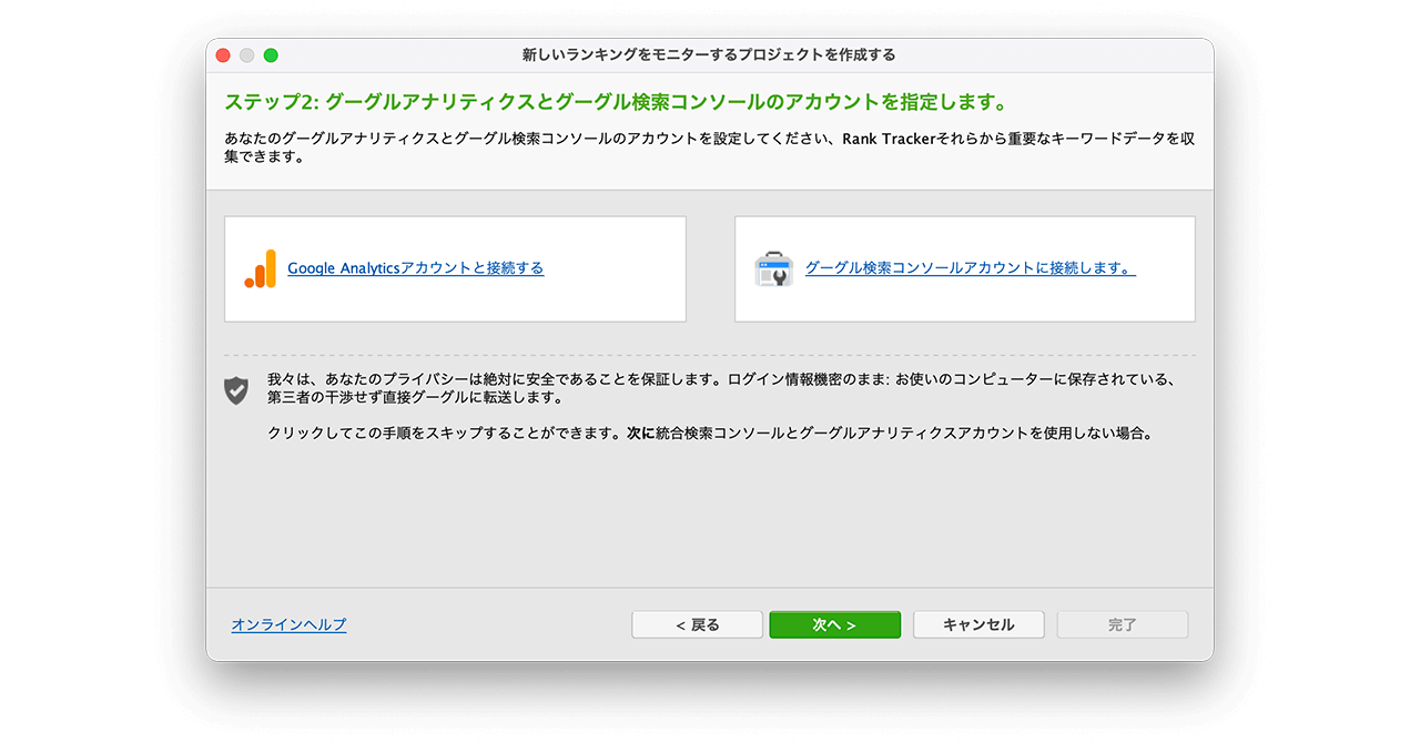 Rank TrackerはGoogle公式ツールとの連携が可能です。