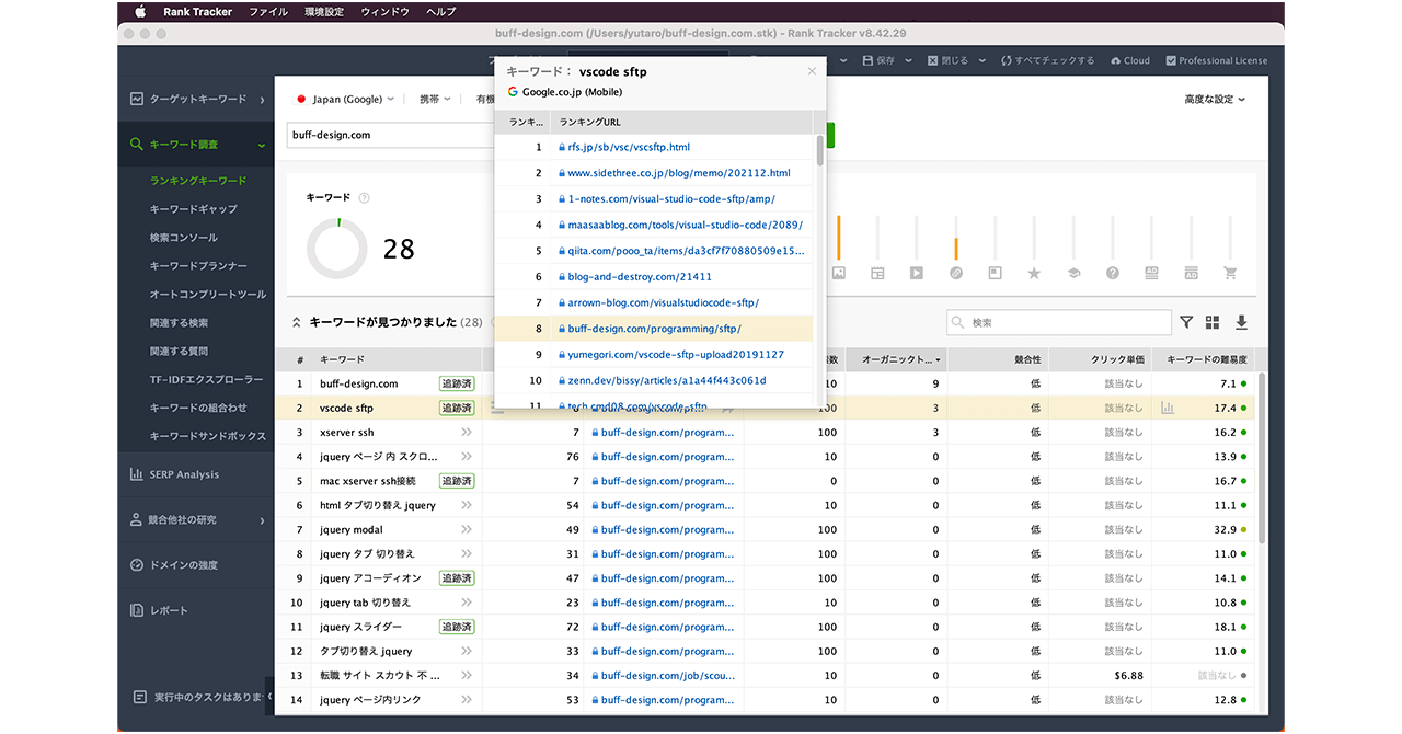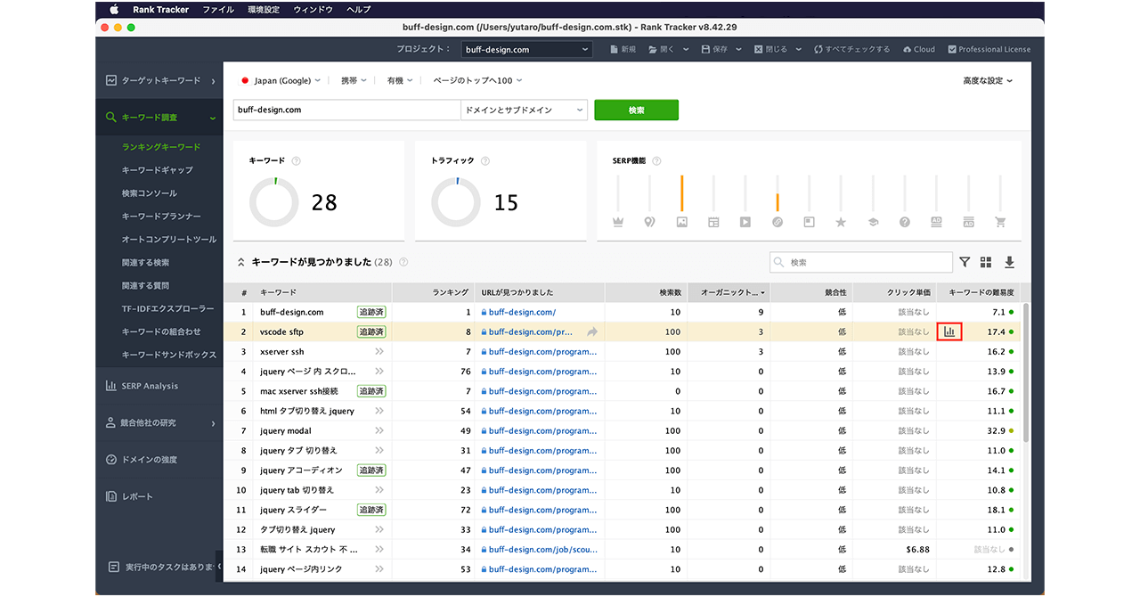 実際に、Rank TrackerでSEO順位をチェックしながらブログ運営しています。