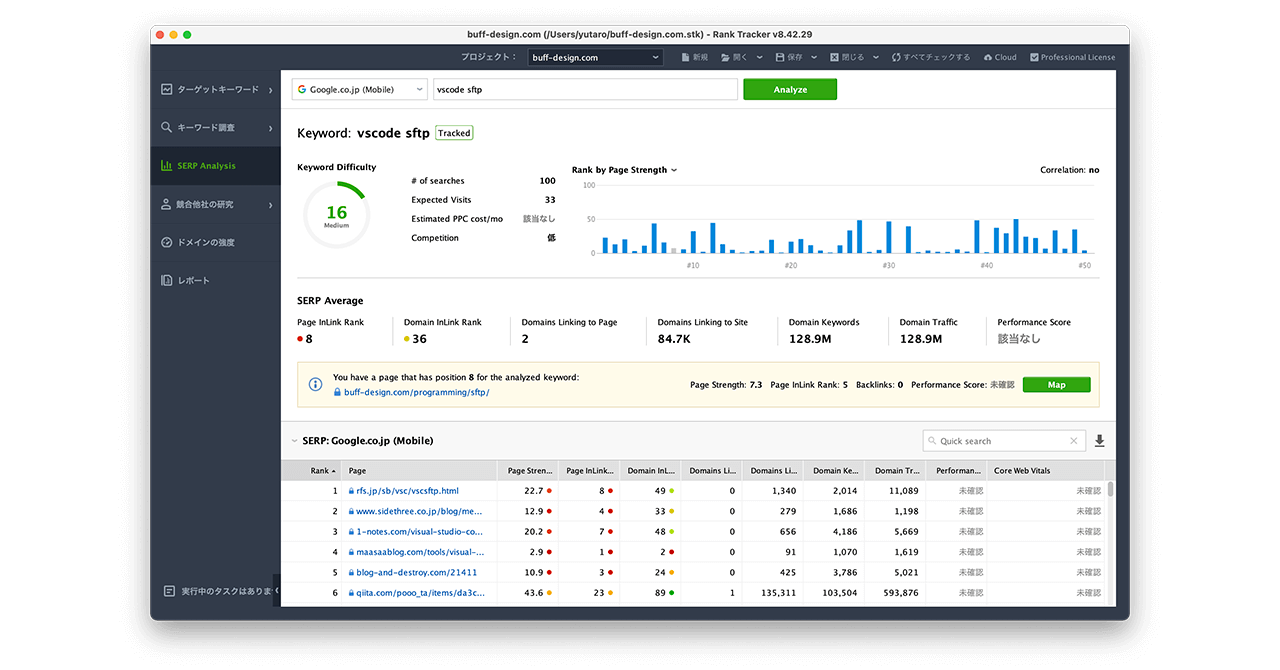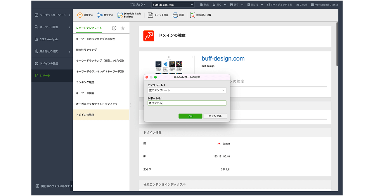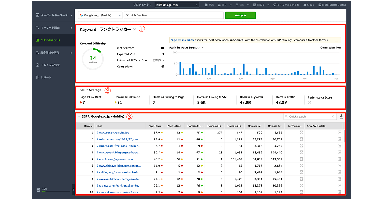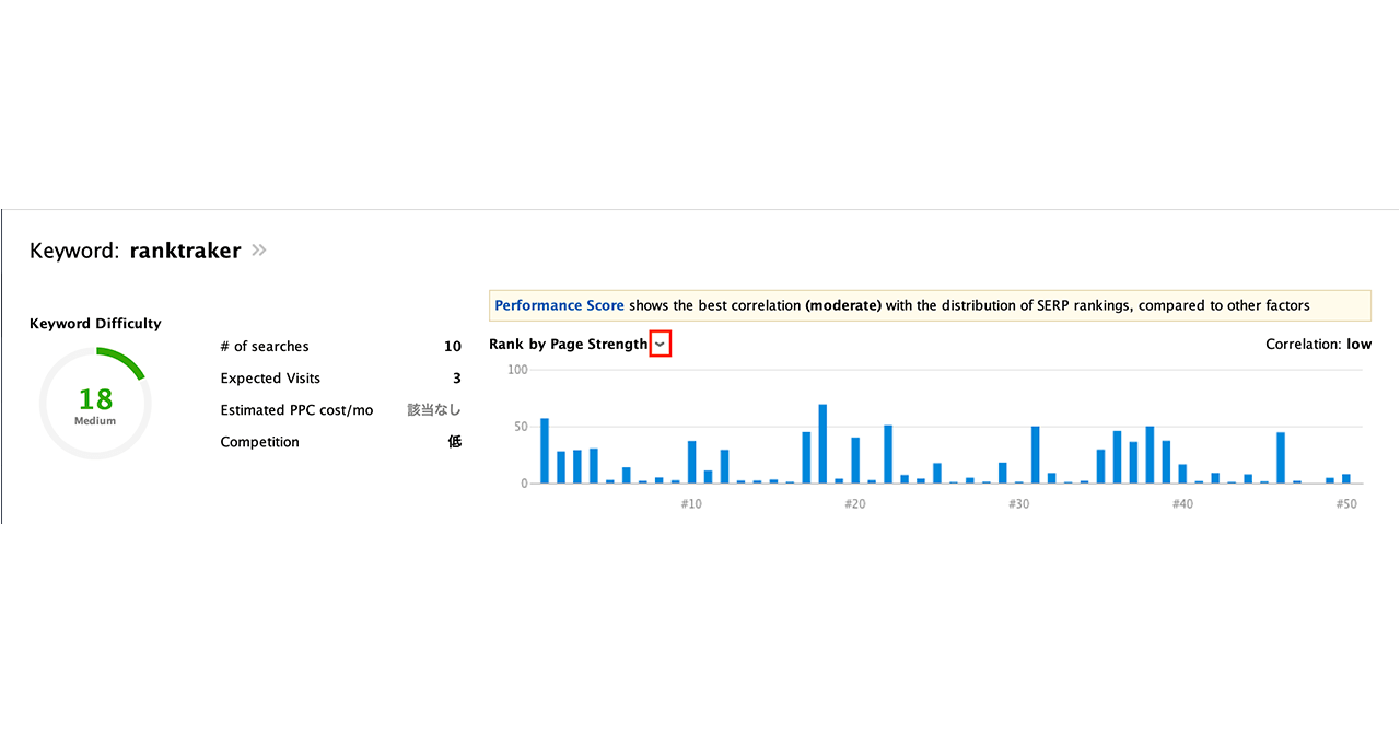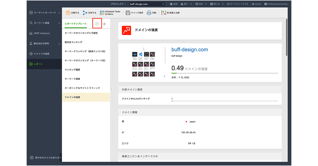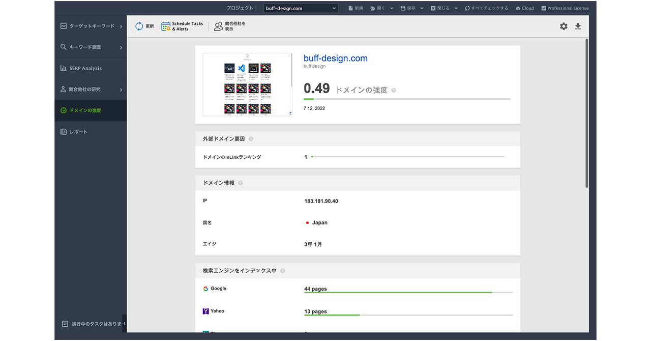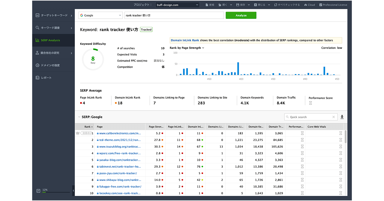 Rank Trackerでもドメインパワー(ドメインの強さ)を確認することができます。