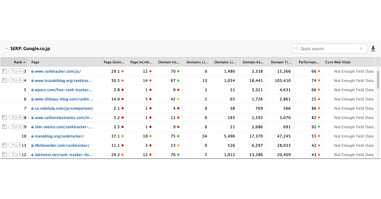 なぜなら、どのような競合が同じキーワードで記事を書いているのか一目で分かるからです。具体的には、数値が高い方が強い競合と捉えて問題ないです。