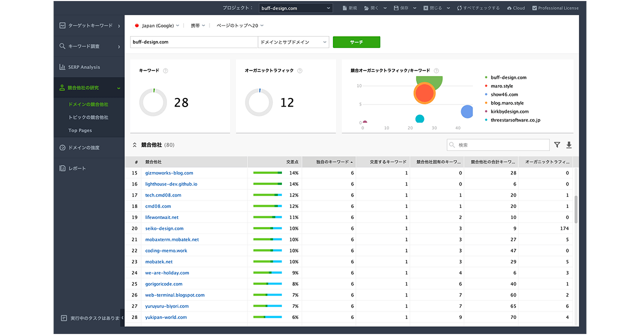 入力したキーワードを元に、競合サイトを自動でピックアップしてくれます。