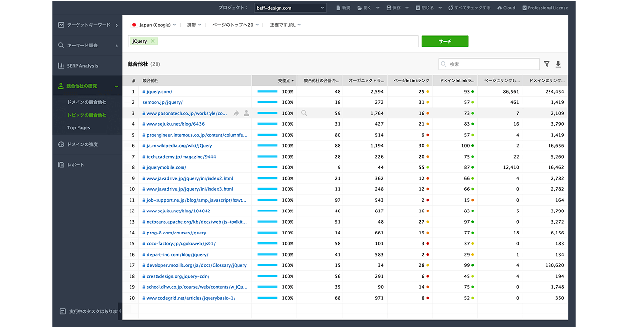 本項目は、競合サイトを洗い出す時にもとても便利な機能です。