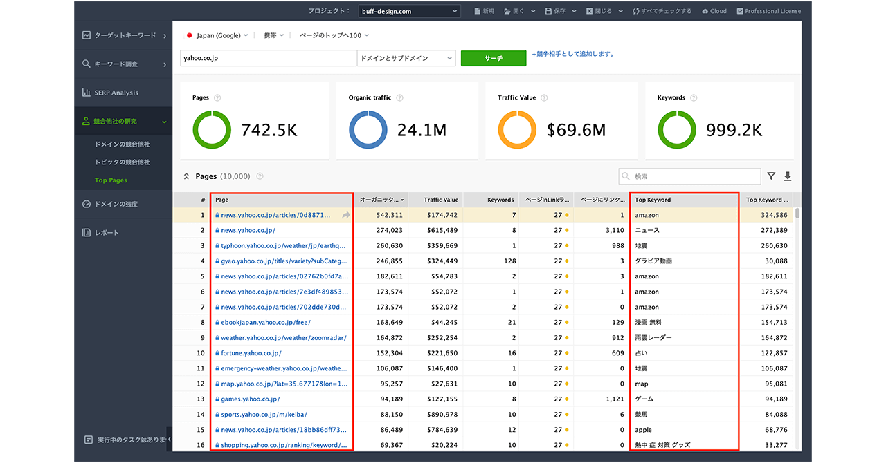 繰り返しですが、ページ単位で競合を分析したい場合は、本機能がもっとも適していると言えます。