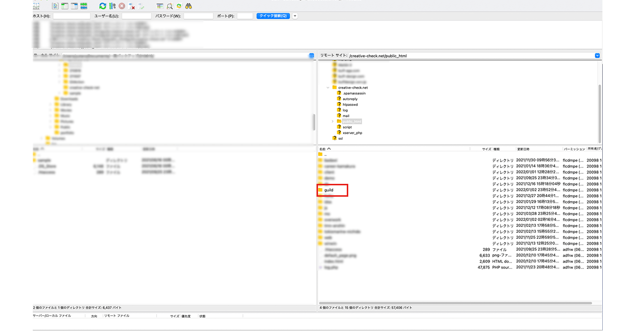 僕が作成したサブドメイン「guild」フォルダが追加されているのが確認できます。